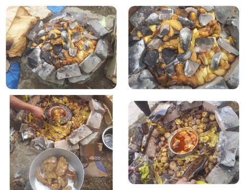 우리나라 국물 문화가 좀 더 많은 가족들이 함께 먹을 수 있게끔 발전하였다는 이론으로 보면 이 음식도 다수의 사람들이 먹을 수 있으려면 그만한 솥이 없어 흙속에 넣고 우리에게 익숙한 흙구이 훈제방식과는 다르지만 그리 음식을 만들었다고 한다.