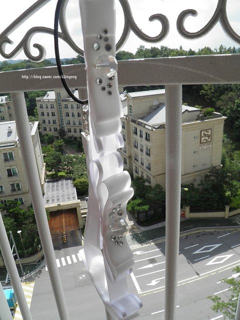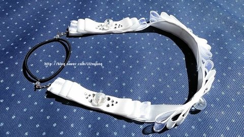 두가지 끈으로 리본만들고 위에 크리스탈 박고 핫픽스?? 붙여줬어요