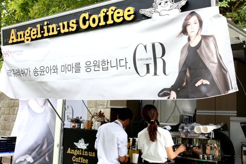 송윤아가 뮤즈인 브랜드 조르쥬레쉬에서 마마 응원차 밥차랑 커피차를 선물했다고 하네요