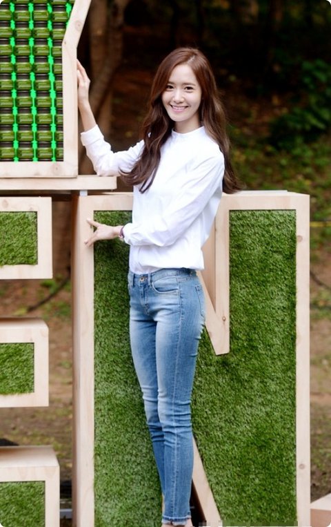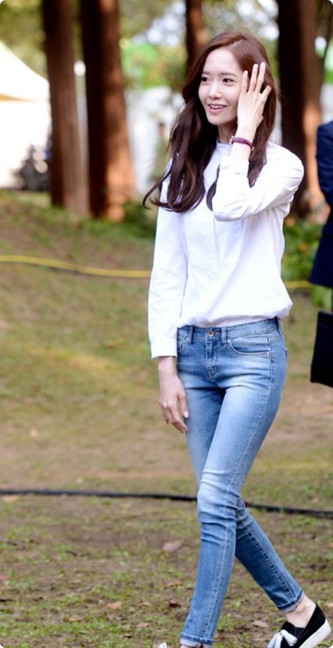 한듯 안한듯한 화장에 흰셔츠에 청바지 입은 윤아.....