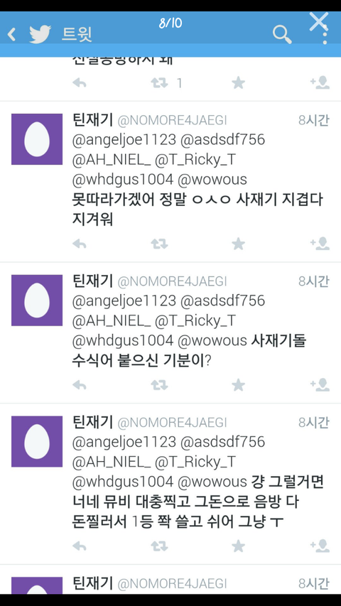 저격글에 팬들은 미친것들. 썅년. 쟤네 막이런식으로 욕하고 틴탑멤버들한테 직멘날려서 욕함