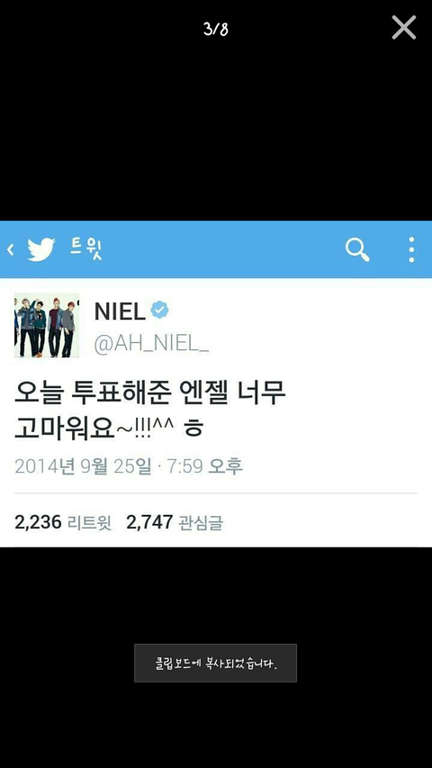 뮤직뱅크에서 투피엠과일위후보로 붙었었는데 틴탑이일위를했음