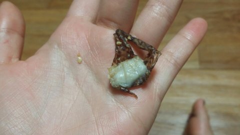 맛!d산 먹구 있는데 다 먹어갈 즈음에 하나빼서 먹을라는데 이렇게 생긴게 있는거에요..ㅋㅋㅋㅋㅋㅋ와 이게 뭐지 싶기도하고 바퀴벌레 같이 생겨서