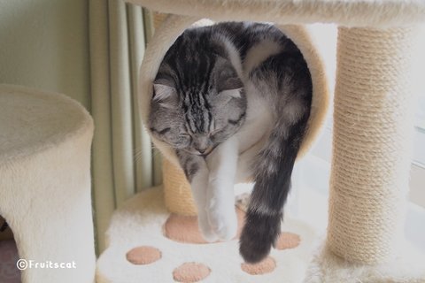 왠일로 앙즈가 캣타워에서 쉬고 있네요.