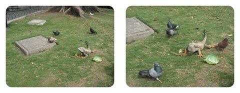 다람쥐과 청설모와 같은 녀석들도 보이고, 어느 공원에서나 흔히 볼 수 있는 비들기들도 널려있다.