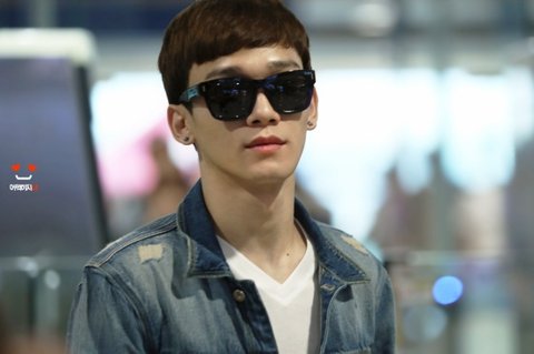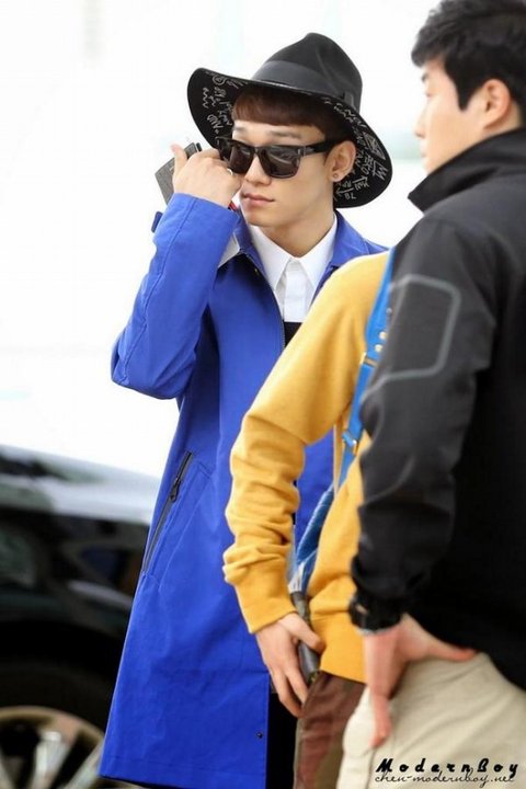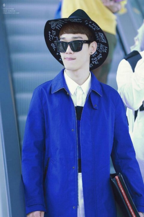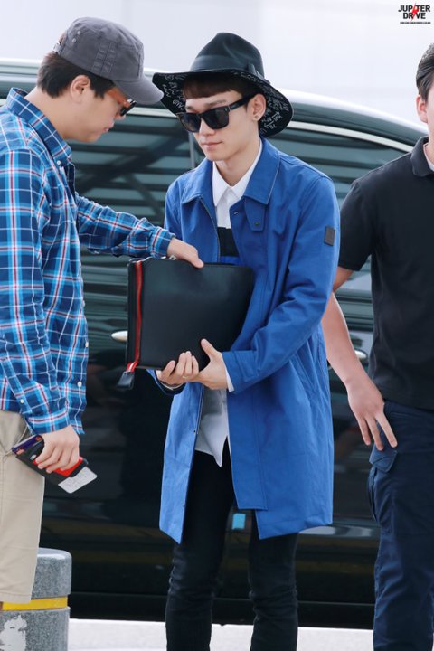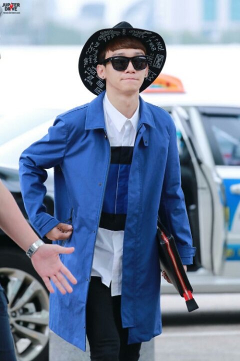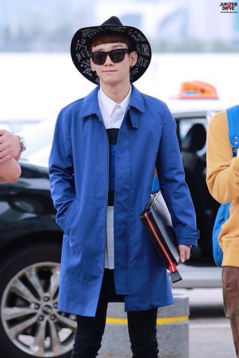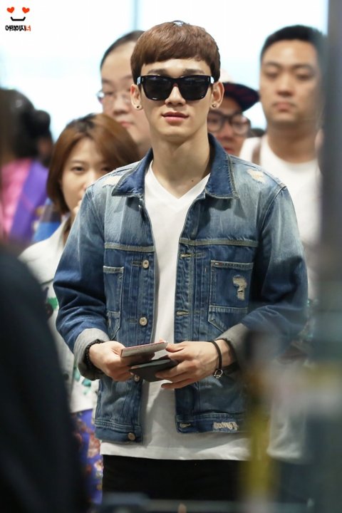 옷 예쁘게 차려입고 공항에 도착한 첸