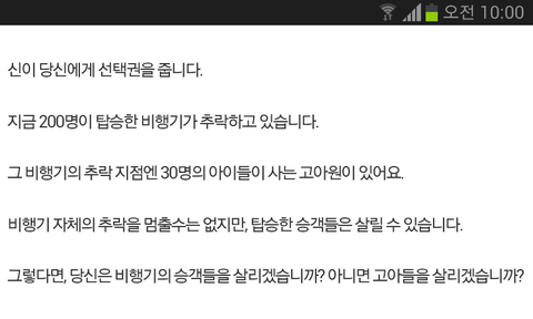 난 승객들을 살리겠음.비행기 자체의 추락을 막을 수 없으면 탑승 승객들만 살리고 어차피 비행기 몸체는 바닥에 떨어지기때문에 추락지점의 아이들은 선택해도 어떻게든 살릴수 없는것 아님?