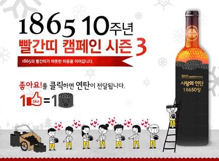 작년엔 페이스북 좋아요 1개당 1개의 연탄이 기부되는 사랑의 연탄 나누기를 진행 했었어요.