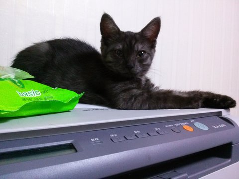 게임 좀 할라 치면 프린트 위에 앉아 지긋이 쳐다 봅니다. 겜좀 그만 하고 놀라 달라냥..~~