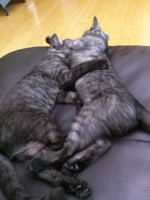 둘이 안고 자고 있네요.. 사랑스러워....므흣