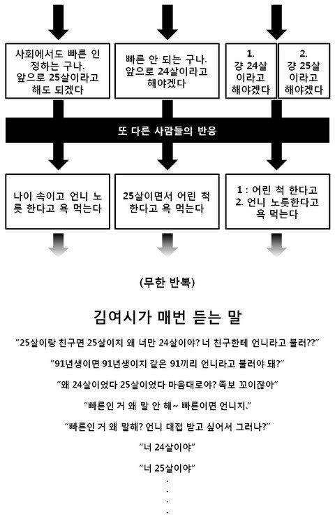 나 빠른년생인데 진짜 이게 입장 애매하고 난처함... 난 솔직히 나랑 같은년에 태어난 애들이 나한테 야야 거려도 상관 없는데 학교다닐때 친구였던 애들은 걔네들 선배고 대학오니까 더 심함.. 내 후배중에 재수한 애들하고는 입장 더 난처하고 진짜 진작에 빨리 없앴어야 하는 제도임