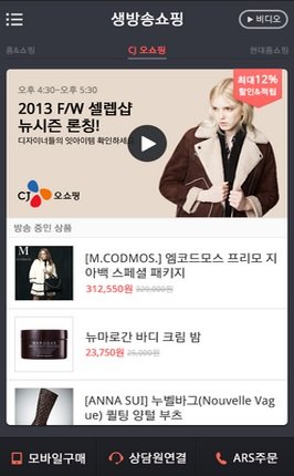 국내 TV홈쇼핑의 방송을 T쇼핑 어플에서 생방송으로 볼수 있고