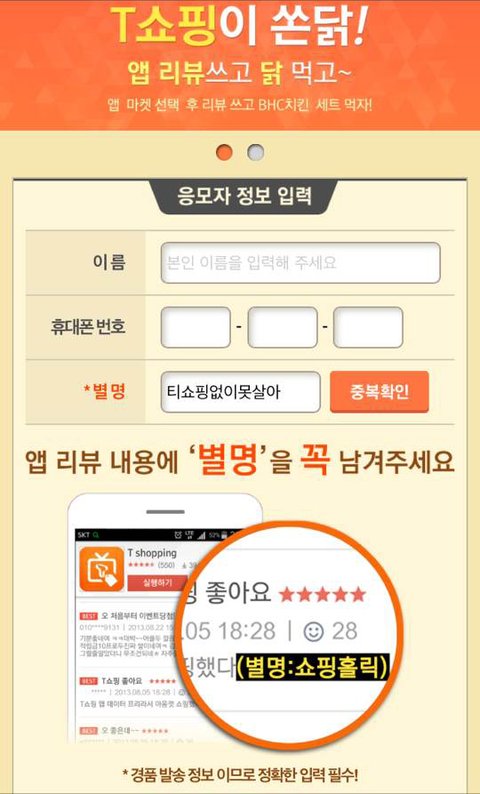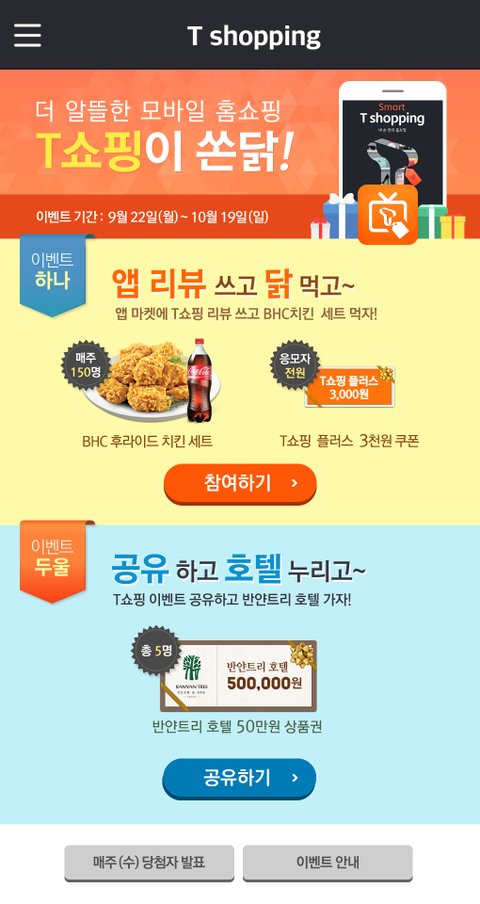 바로 'T쇼핑이 쏜닭!' 이벤트!