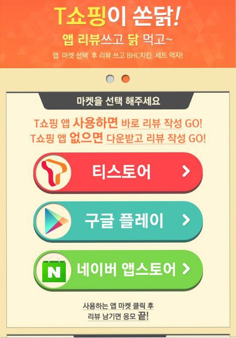 리뷰 쓸 앱 마켓 선택하는 화면이 나와용!