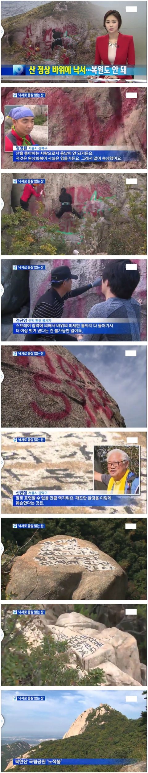 ㅈㄴ 욕나오네. 댓글 안남길수가없다. 어떤 ㅅㅂ ㅆ개또라이샛기가 락카칠을 북한산 바위에다해. 그 씺샛기 방 벽에다 쳐 바르지ㅡㅡ. 낙서한샛기 조카 답이없다. 인생자체가 낙서같은 쓰레기샛기