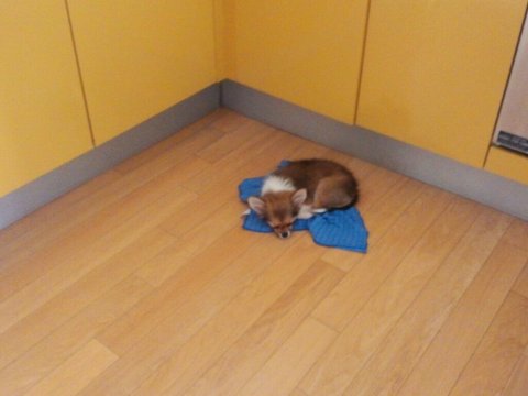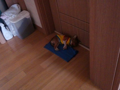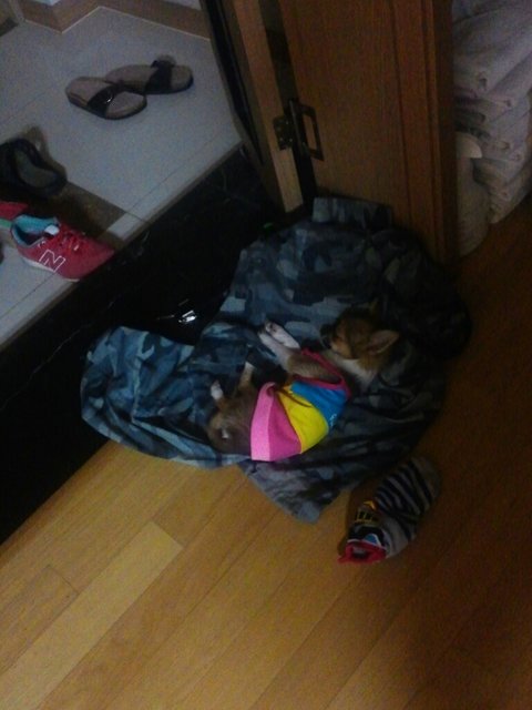 화장실 앞 발수건 질질 끌고와서 숙면중