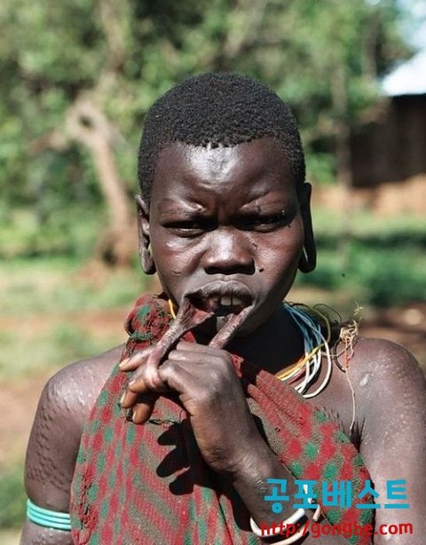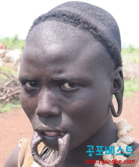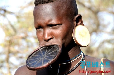 아프리카 에티오피아 영역 부근에 거주하는 무르시족과 수르마족의 여자들의 미의 기준입니다.