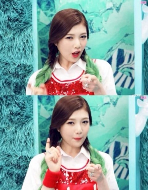 데뷔때부터 밑에머리 초록색으로 무대에서