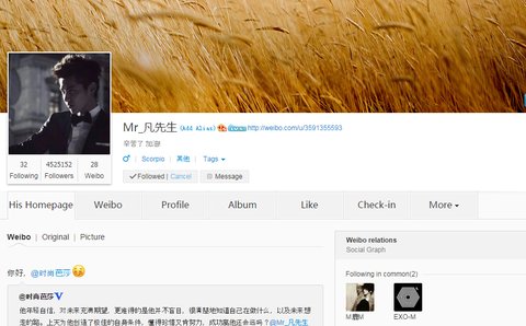 우이판 웨이보 루한 팔로잉중