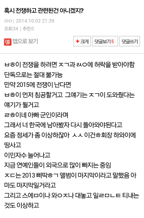 전쟁 같은 소리한다