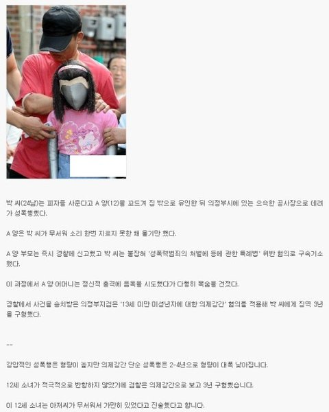 아.....씨.....욕나올뻔했네~~~ 12살 아이를 성폭행 했는데 3년?적극적으로 저항하지 않아서라고???판사 니들 다 또라이들야 다른 새끼는 3년에서 2년으로 친절히 형량을 깍아주네....