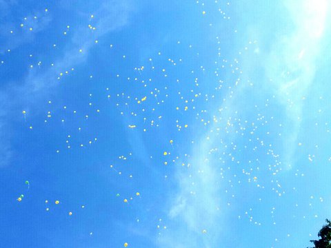 사람들 노랑풍선하나씩들고