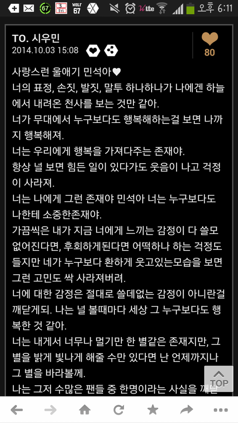 하트도 80개나 받고 편지도 엄청 길게써놨는데ㅠㅠㅠㅠ