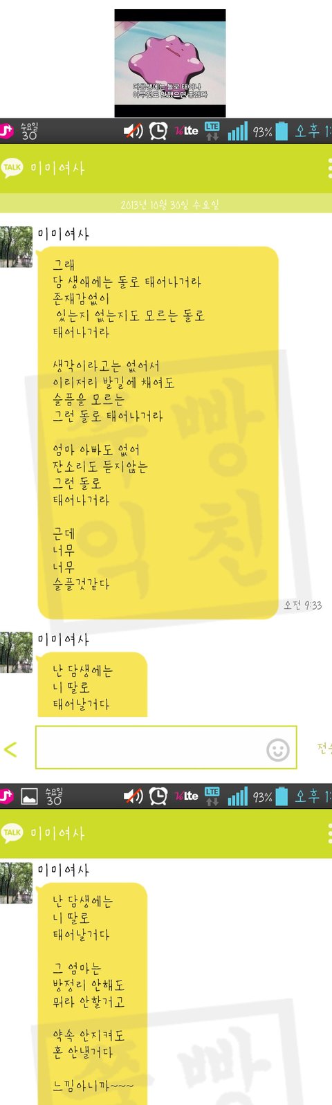 위에사진으로카톡프사를해놨는데 엄마한테카톡온거