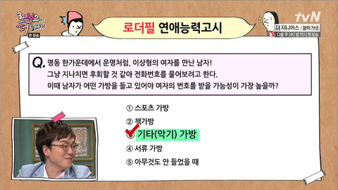 음악적 능력을 남자의 유머나 재능을 알 수 있는