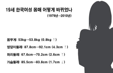 최근 30년간 19세 한국여성 몸매의 변화..