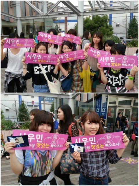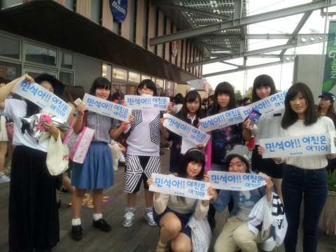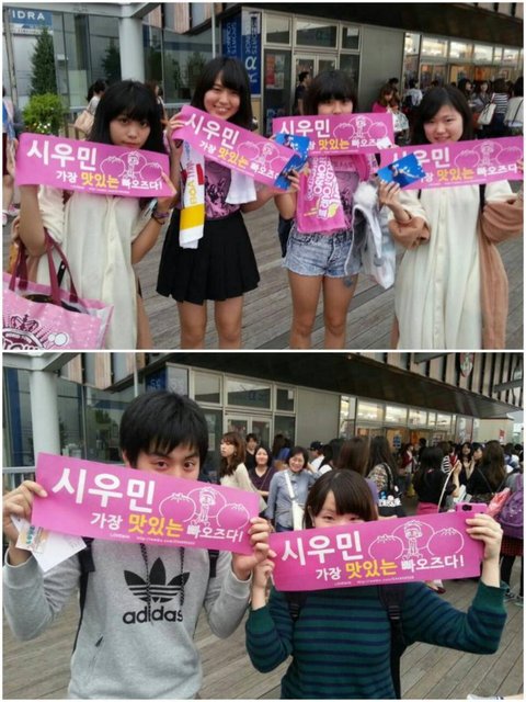 중국민석이홈들 외국공연도 빼놓지않고 슬로건 배부하시네 고마워라~~일본팬분들도 잘부탁드려요 .