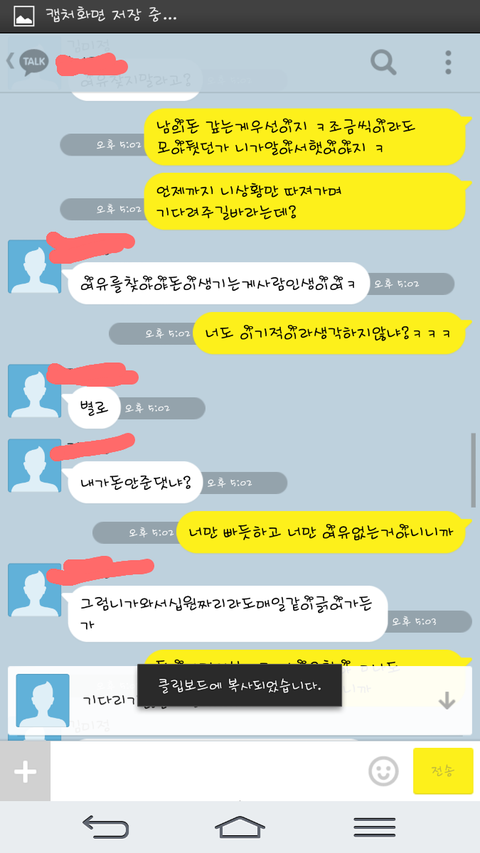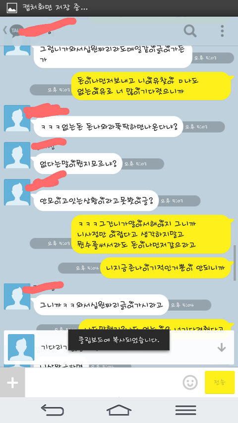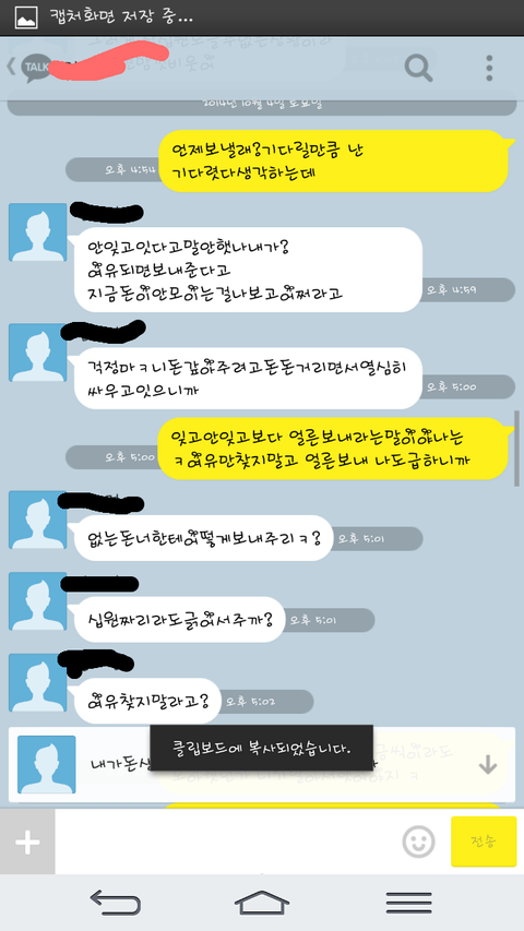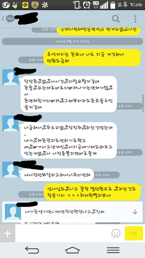 그렇게 빌려주고 그날 재미있게 잘놀았음. 말리지못한내가 참.후려갈길년이지만 헌팅도하고 신나게 놀고각자 흩어짐. 담날 알게된 사실인데 그년은 즉석만남을 한 남정네와 하룻밤을 보낸거임.자신이 유부녀라는것을 숨긴채..그렇게 그년은 집에서 털리고 연락이 두절되고 바로갚겟다하여 빌려준 나의 피같은 돈을 언제 받을수있나 핸드폰만 들고살다 톡을보냄. 몇일후에 연락이왔고 그달내에 주겟다는말과 계좌를 보내달라는말. 사정이딱하여 알겟다하고 기다렷으나 몇일이지나고 한달이 지나도 깜깜무소식에 다시한번 연락을 함. 읽씹을 당햇고 그걸 본 나는 다시한번 연락을하였음. 나에게는 연락이 온적이 없으며 지가 나한테 연락을햇는데 내가 씹었다는 그지같은 대답이돌아오고 또사정을 봐주게됨.그렇게 총 네달이흐르고 오늘나는 또다시 연락을하다 화가나서 막말을하게됨. 사진첨부함.