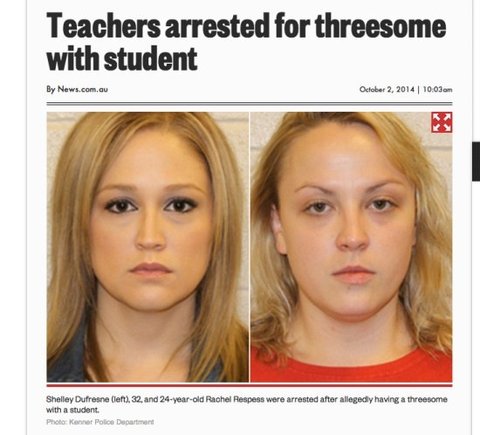 제자인 남학생 1명과 함께 '스리섬'을 한 혐의로 체포됐다