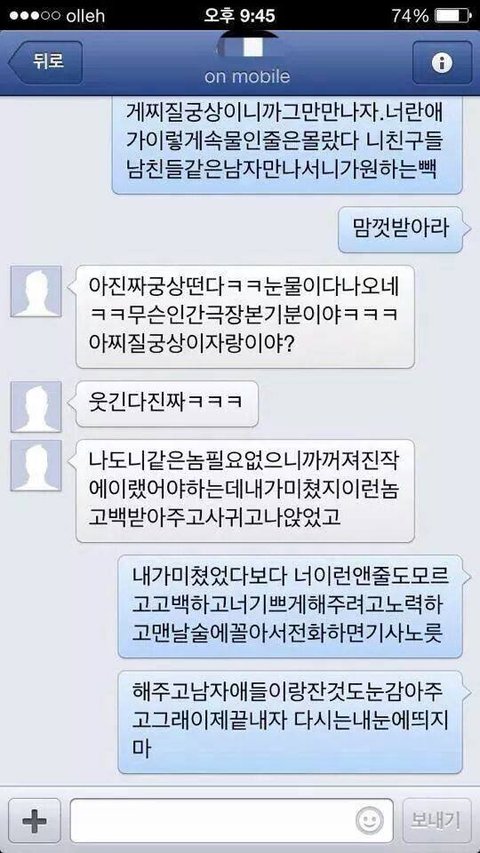 인터넷 어디선가 올라온 캡쳐인데 어디서 본지 기억 안나구 열받아서 캡쳐만 했네..