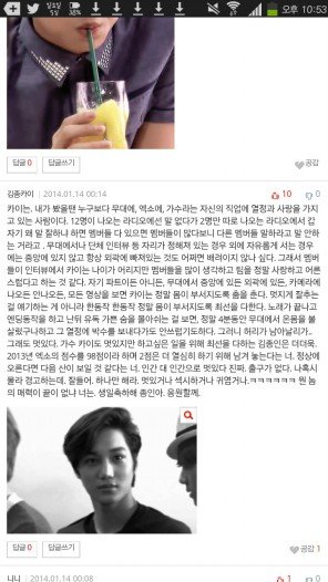 진심 종인이가 카이가 엑소가 엑소엘이 잘 됐으면 좋겠다