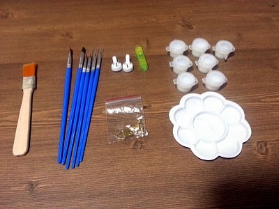 적잖이 큰 솔(?)과 색을 칠할 큰 붓, 중간 붓, 작은 붓 각 두개씩 있더군요...