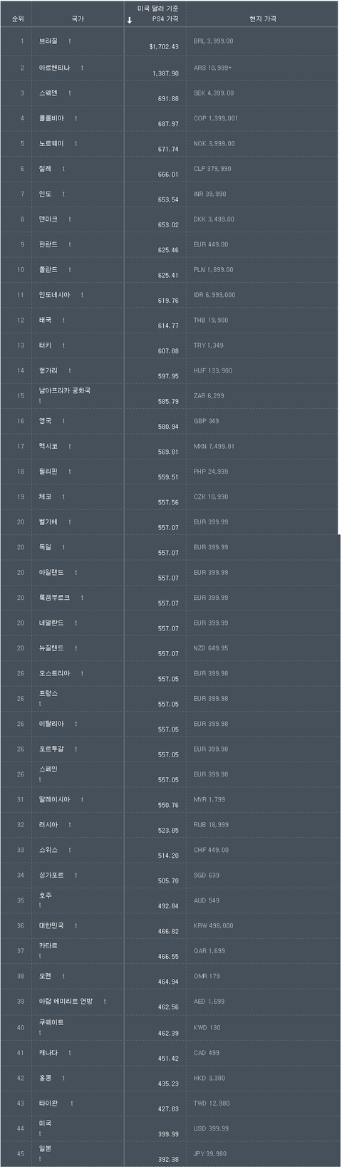 플스4 가격이 세계에서 자국에 가장 싸게 팜...