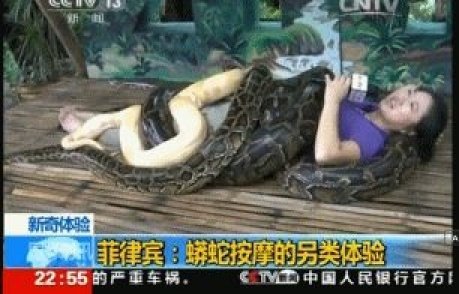 ‘비단뱀 안마 프로그램 체험 보도를 내보냈다
