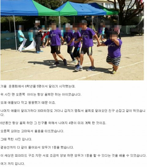아이들에게 배울 때가 이런 때인거 같음. 나도 초등학생인 아들이 있는데 같은 반에 다문화 가정애들이나 장애우가 있음. 은연중에라도 내가 물을때 그 애를 거론하면서 "그 애랑도 친하니?" 이런식으로 물었더니 하루는 의아하게 날 보며 물어봄. "엄마 난 다 친해요. 내 친구는 25명(반 아이들)이에요. 근데 왜 엄마는 xx이랑 @@이도 친하냐고 물어봐요?? 다 내 친구들이에요."라고.. 1학년짜리 앞에서 내가 어떤 시선으로 아이의 친구들을 바라봤는지.. 반성했었는데..