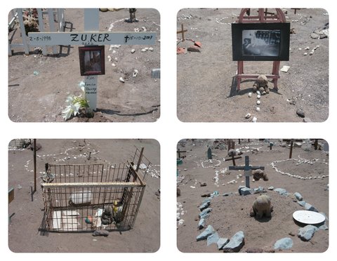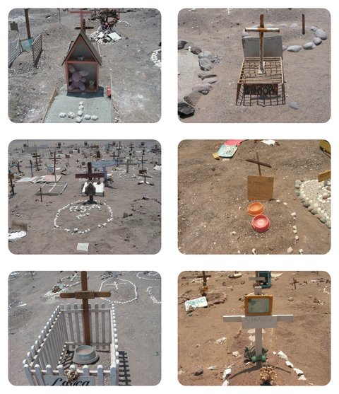사막지대의 황량함에다 사람들 안식처와 같은 녹지와 그늘도 없어 삭막하기 이를 데 없지만 한동안 같이 한 반려동물에 대한 무덤을 따로 만들어준 Chile Iquique사람들의 배려가 각별해 보인다.