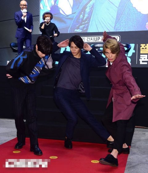 다들 포즈잡는데 일반 제작발표회랑은 많이다름ㅋㅋㅋㅋㅋㅋㅋㅋㅋㅋㅋ