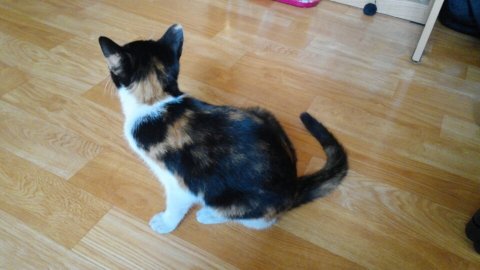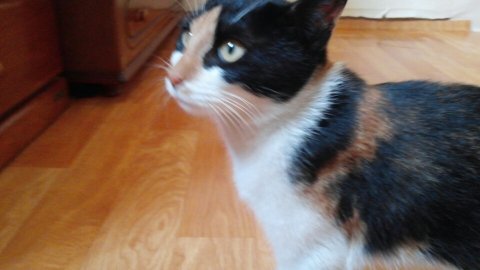 바닥에 내려놓았던 고양이가 저희어머니를 쫄랑쫄랑 쫓아오기 시작했습니다.