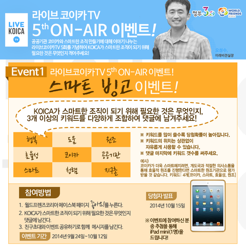 KOICA가 스마트한 조직이 되기 위해서 필요한 것은 무엇인지, 3개 이상의 키워드를 다양하게 조합하여 댓글에 남겨주세요!