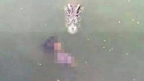 악어들은 순식간에 물에 빠진 이 여성에게 몰려들었고