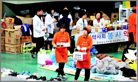 그 수많은 자원봉사자들의 수고와 헌신에 깊은 감사를 전합니다.그리고 아픔의 현장 속에서 항상 발견할 수 있는 사람들이 있습니다. 바로 국제위러브유운동본부 회원들이죠. 국제 위러브유운동본부 회원들은 어머니의 마음을 담아 사랑으로 땀 흘려가며 밥을 지었습니다. 많은 열마디 말보다 때로는 마음과 정성이 담긴 밥한공기가 위로가 되는 법이죠.. 장길자 회장님을 비롯한 회원들의 진심어린 봉사활동이 많은 사람들의 위로가 되고 본이 되었다는 보도가 있어 올려 봅니다.