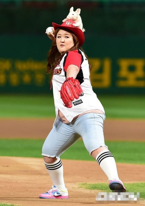 시원하게 시구끝내고 인사하는 매력덩어리 이국주ㅋㅋㅋㅋㅋ