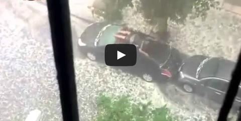 온몸으로 우박을 막는 남자