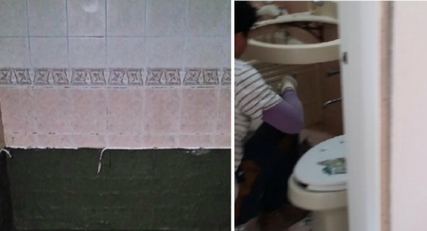 아파트가 언제 생겼는지 딱 봐도 느낌 오는 오래된 타일은 제거.