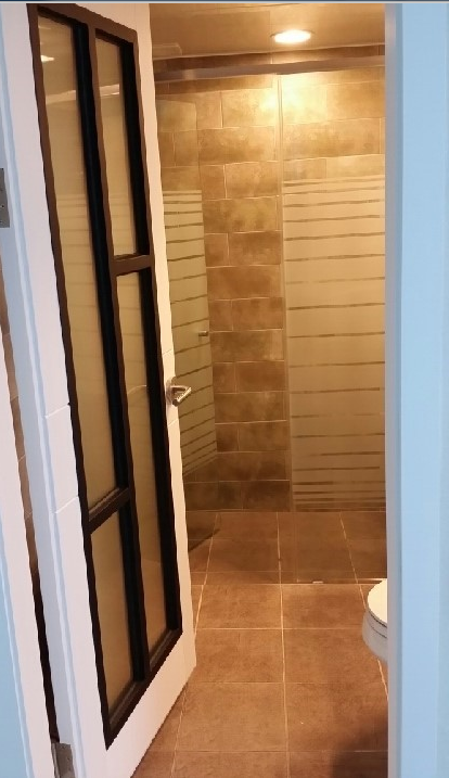 욕실 문은 타공을 해서 안에 사람이 있는지 없는지 불로 확인할 수 있게 제작했습니다.