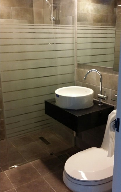 욕실이니 아른아른하게 실루엣이 보일 정도로 해달라고 부탁드렸죠.